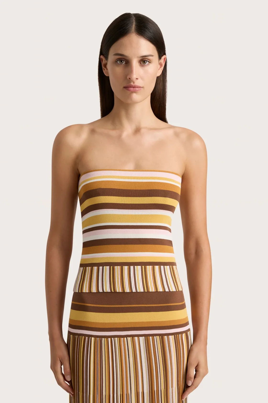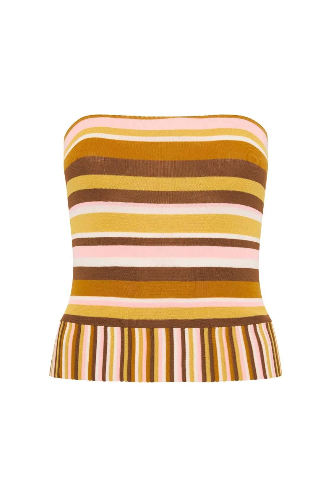 A fitted strapless top, designed in FAITHFULL’s signature stripe and a true knit fabrication. With elastane woven thro…